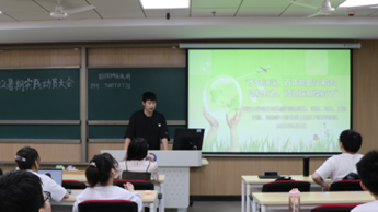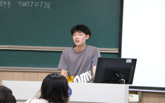 大会第三项,由2021年暑期实践校级一等奖获得团队的骨干成员路翔为大家分享实践经验。路翔为大家介绍了实践的具体活动开展模式和实践优秀成果,使同学们了解到如何让实践活动新颖且出彩。最后路学长鼓励和号召同学们积极参与活动,坚定同学们参与实践活动的想法与决心。