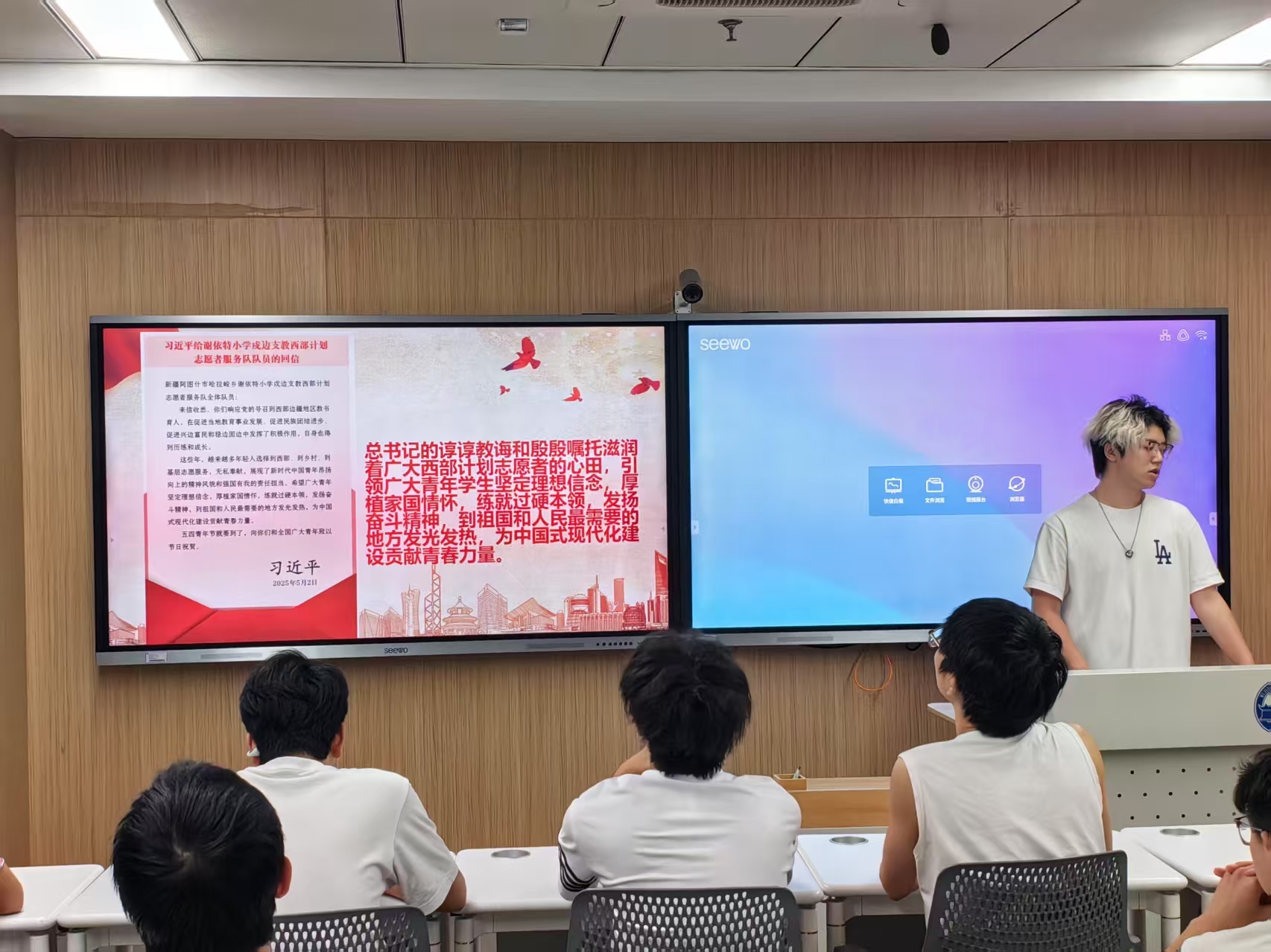 随后,团员青年们围绕回信精神展开热烈讨论。多位团员青年结合自身经历分享感悟,认为西部计划志愿者用行动诠释了青年的责任与担当,作为新时代大学生,应主动将个人理想与国家发展需求相结合,在实践中锤炼品格、增长才干。有团员青年表示:“习近平总书记的回信为我们指明了方向,青年的价值不应局限于个人发展,更应在服务国家战略中实现升华。”