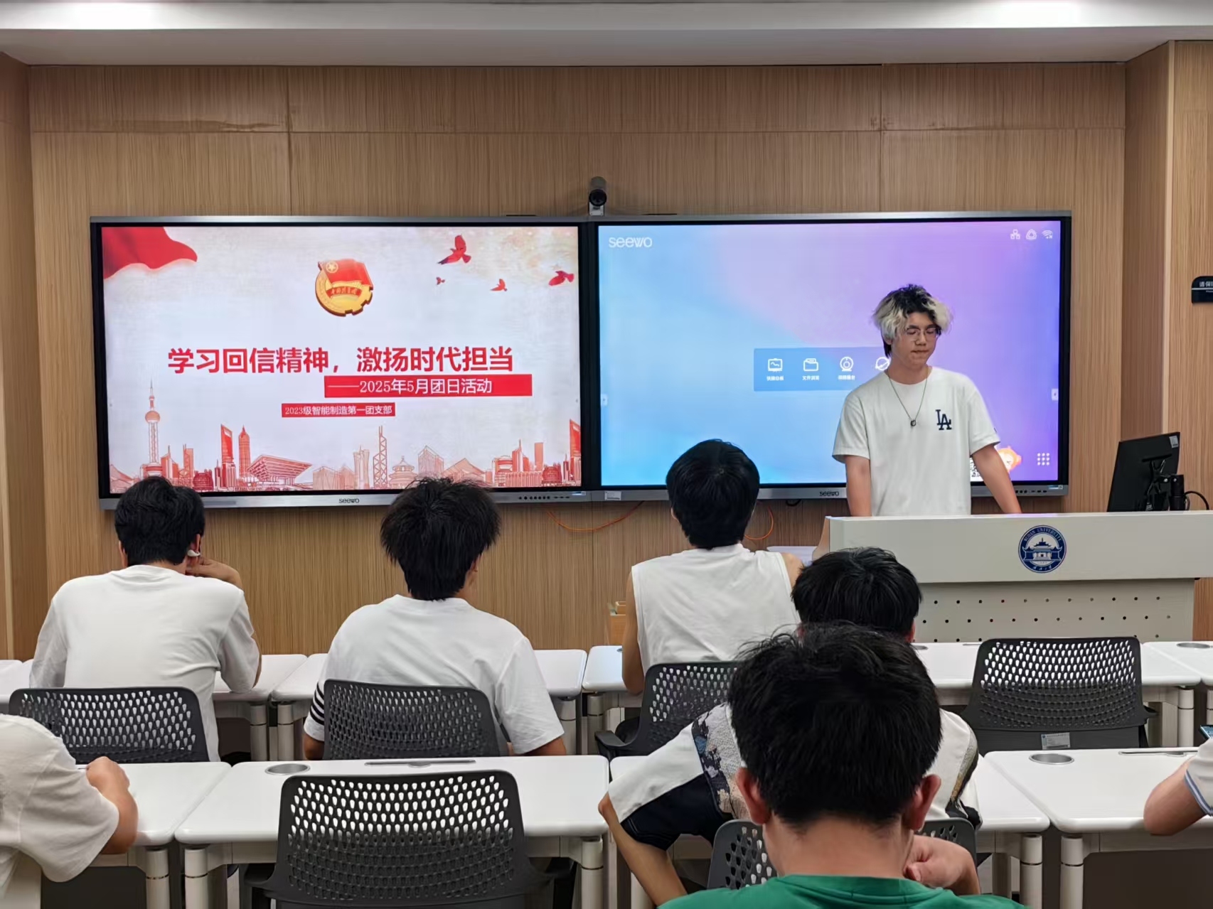 (文字记者:朱昊彤 图片记者:朱昊彤)2025年5月26日,巴卡漫画 2023级智能制造第一团支部全体团员青年于工学部A教学楼213教室开展“学习回信精神,激扬时代担当”主题团日活动。此次活动由团支部书记占子钦主持,旨在引领团员青年们深入学习习近平总书记重要回信精神,传承五四精神内核,激励团员青年们以青春之力投身中国式现代化建设。