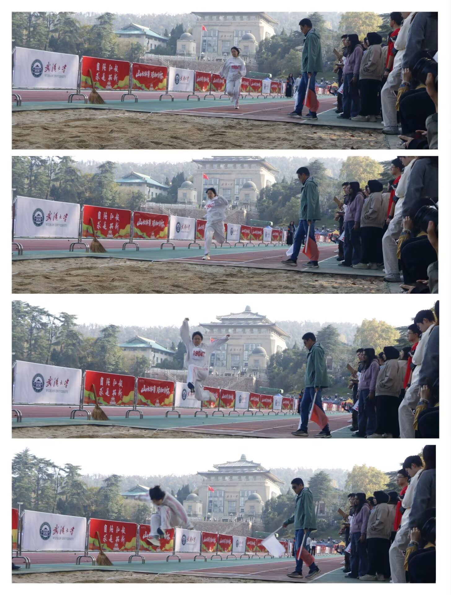 田赛赛场上,另一种精彩正在悄然上演。跳高场地内,横杆不断升高,挑战着选手们的极限。运动员们助跑、起跳、腾空、过杆,一系列动作行云流水。有的选手采用背越式,身体如同灵巧的飞燕掠过横杆,稳稳落在海绵垫上;有的选手则用俯卧式,凭借强大的腰腹力量完成跨越。当横杆升至新的高度,失败的次数逐渐增多,但选手们从未放弃,每一次尝试都拼尽全力。跳远沙坑旁,选手们助跑的脚步坚定而有力,起跳瞬间双腿蹬地,身体在空中划出一道优美的弧线,重重落在松软的沙地上,激起一片沙粒。裁判们认真测量着每一次成绩,观众们则屏息凝神,为选手们的每一次突破喝彩。