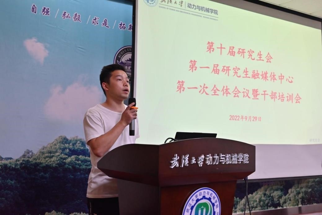 会议第四项由研究生融媒体中心负责人彭宇琦与安全权益部负责人董晓亮分别对新闻稿的撰写与投稿流程、报账流程与注意事项进行培训。