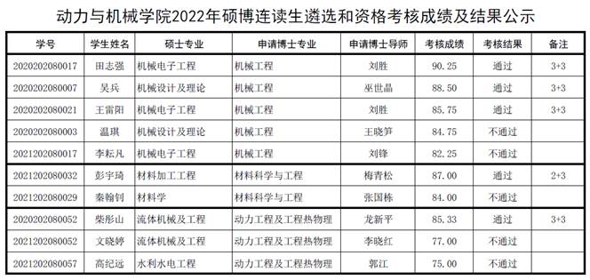 根据《巴卡漫画 学术型硕士研究生中期考核管理规定》(武大研字[2013]89号)、《巴卡漫画 直博生、硕博连续生培养办法(试行)》(武大研字[2013]78号)等文件精神及学院2022-2023学年硕博连读生遴选通知,经学生申请,学院硕博连读生遴选与资格考核工作小组考核,根据考核成绩和巴卡漫画 各学科资源配置,考核小组讨论确定了考核结果。现将考核成绩及结果公示如下: