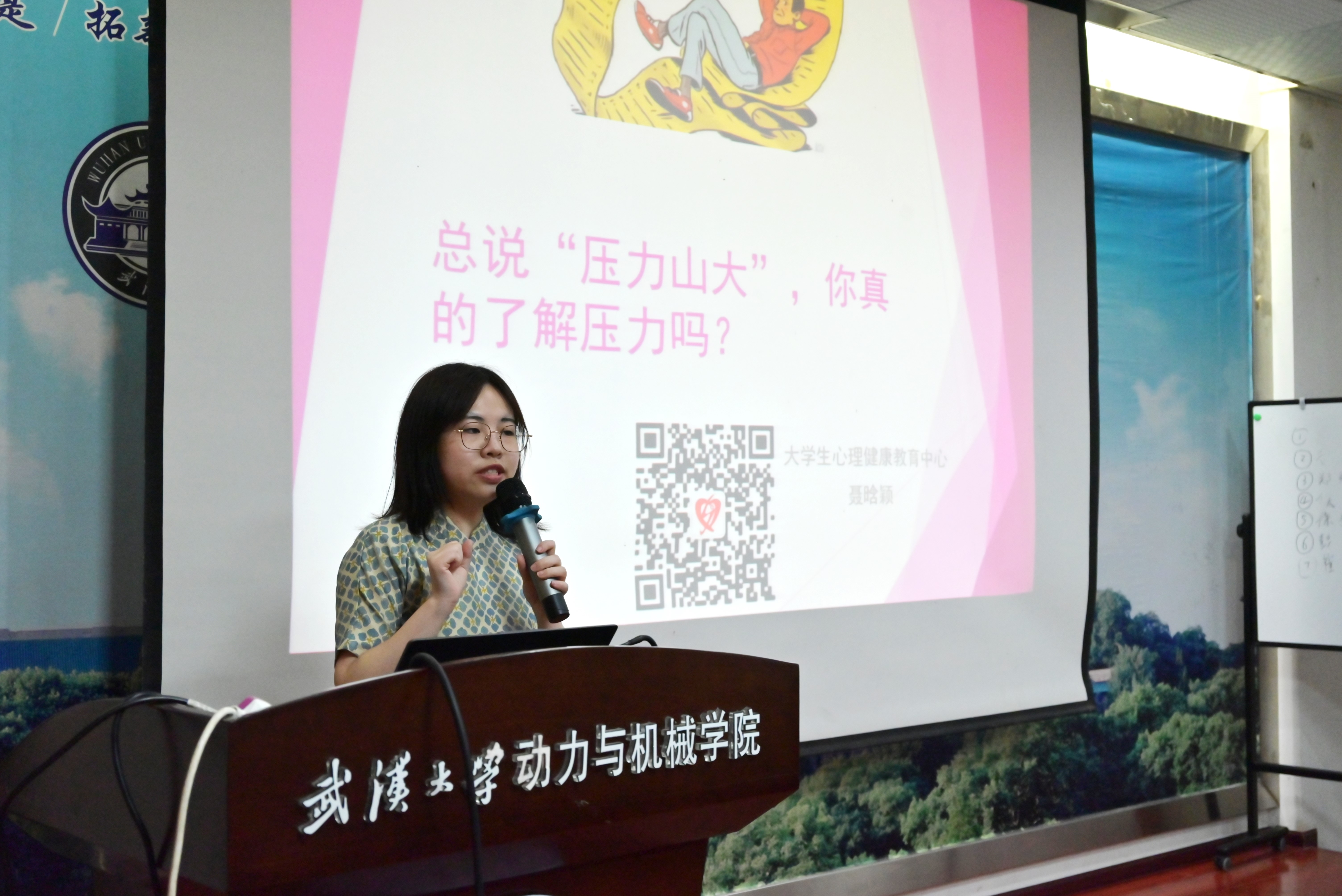 会议开始,聂晗颖进行以“如何认识与化解压力”为主题的心理健康教育讲座。聂晗颖对于压力产生的来源、如何认识压力等方面进行了介绍,重点针对如何化解自身压力提供了一些具体措施。她在最后向同学们介绍了巴卡漫画 大学生心理健康教育中心,希望同学们能够积极的认识压力,化压力为动力,遇到心理问题可以及时向中心寻求帮助。