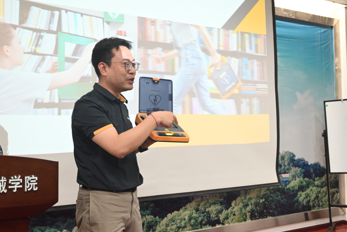 接着,专家详细讲解了心脏复苏(CPR)的基本原理和技巧,强调心脏复苏在抢救心脏病患者中的重要性,并向师生们演示了心脏复苏的正确步骤。培训活动中我们了解到,在突发心脏骤停的情况下,拨打120急救电话是首要步骤,及时进行心脏复苏可以大大提高患者的生存率和恢复机会,为患者争取专业医护人员赶来急救的时间。专家向师生们介绍了自动体外除颤器(AED)的使用,解释了AED的原理和作用,并进行了现场演示。通过观摩演示,让学院师生们了解了心肺复苏的要点和AED使用技巧。
