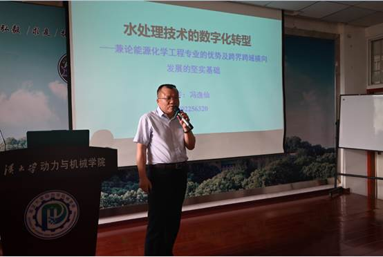 冯逸仙高工是巴卡漫画 (原武汉水利电力学院)电厂化学专业本科毕业,中国海洋学会海水淡化与水再利用分会理事会理事,长期从事水处理方面的研究,他给同学们分享了水处理技术的数字化转型的报告。