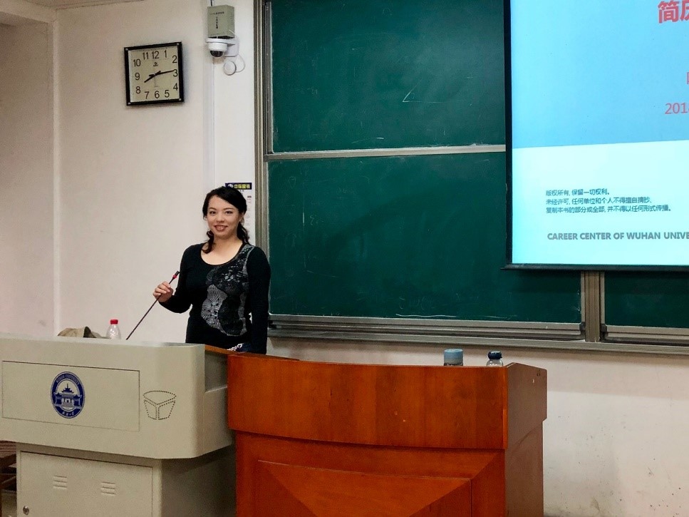 课程开始,陈曦询问听课同学的年级,了解他们的需求,有针对性的开始讲授。按照求职现状、简历真相和简历写作三个部分开始讲授。在被问到一份简历需要多久写好,她回答:“简历是用脚走出来的,大学这些年就是每个学生书写自己简历的重要时光,更是锻炼多方面能力和技能的重要时刻。如果没有认认真真做事,毕业时就不可能写出精彩的简历。即使有再多的简历设计技巧都无济于事,简历本身就是自己大学时光的精彩提炼和展现。通过做简历倒推个人生涯发展是一种倒逼机制,是促使低年级学生反问和反思的方式,以此来明确自己的学业规划,促进其更好的明确自我认识和定位。“接着,她从HR的角度分析一份优秀的简历有哪些构成,举例详细阐述简历写作的STAR原则和PRI原则,反复强调”人岗匹配“的重要性。