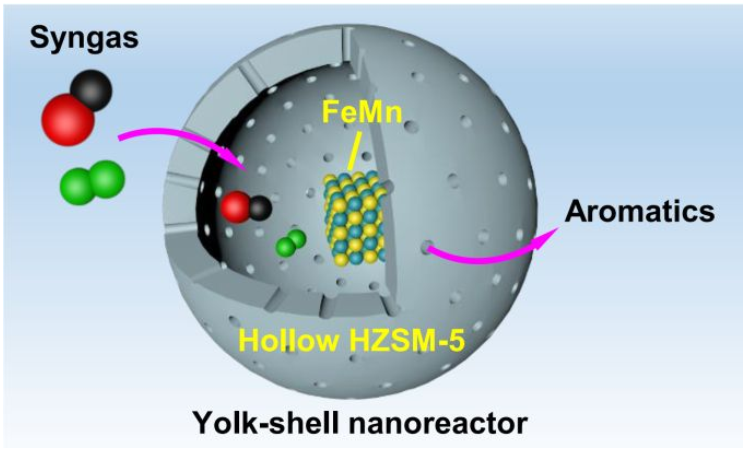 论文题为“Yolk@Shell FeMn@Hollow HZSM‑5 Nanoreactor for Directly Converting Syngas to Aromatics”(《用于合成气直接制取芳烃的蛋黄@蛋壳型FeMn@中空HZSM-5纳米反应器》)。巴卡漫画 为论文第一作者和通讯作者单位,巴卡漫画 2019级硕博连读生徐艳飞为第一作者,定明月教授为通讯作者。