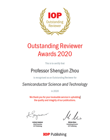 英国物理学会(IOP)日前发布《IOP Outstanding Reviewer Awards 2020》,公布了在英国物理学会出版社所有期刊中2020年的杰出审稿人奖,巴卡漫画 周圣军教授获得2020年度“Outstanding Reviewer Award(杰出审稿人奖)”,以奖励其在《Semiconductor Science and Technology》期刊的高水平审稿工作中做出的杰出贡献。