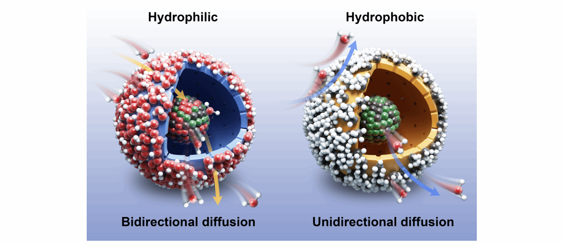 亲/疏水催化剂上水分子不同的扩散行为