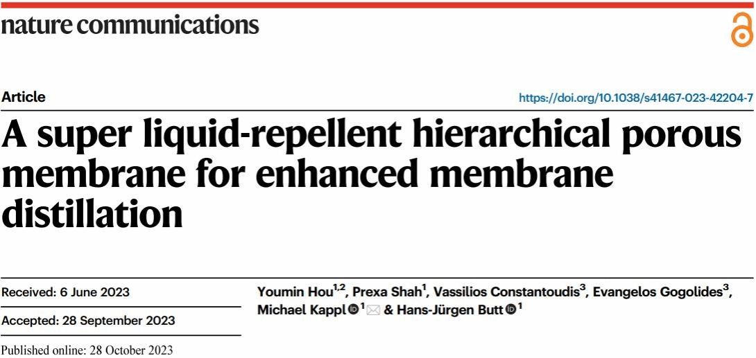 近日,巴卡漫画 侯佑民教授课题组在国际学术期刊《自然·通讯》(Nature Communications)发表了膜蒸馏海水淡化领域的研究成果,论文题目为“A super liquid-repellent hierarchical porous membrane for enhanced membrane distillation”。