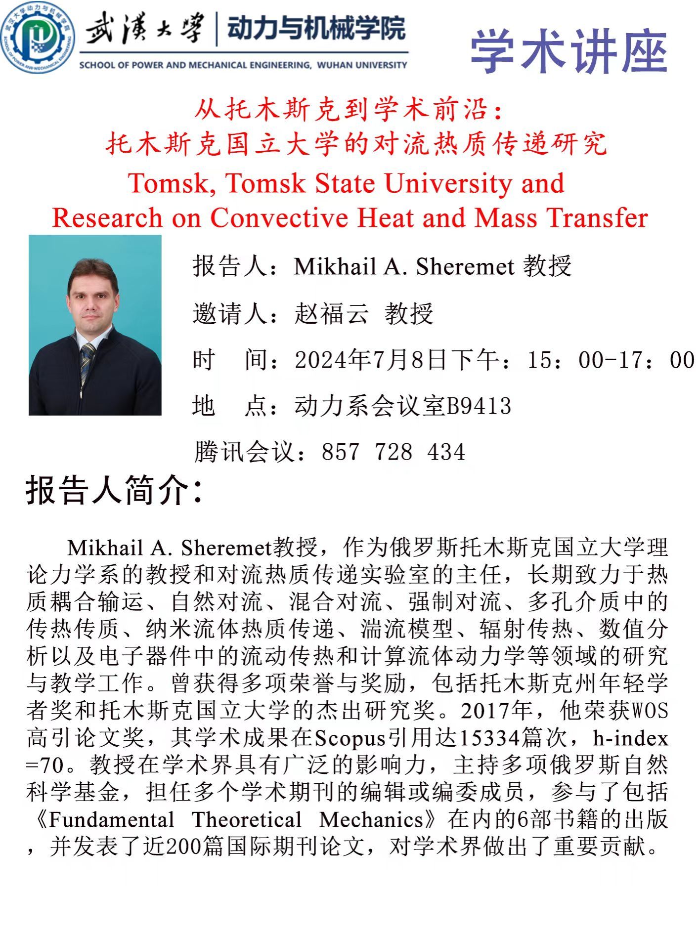 学术讲座:托木斯克国立大学的对流热质传递研究
