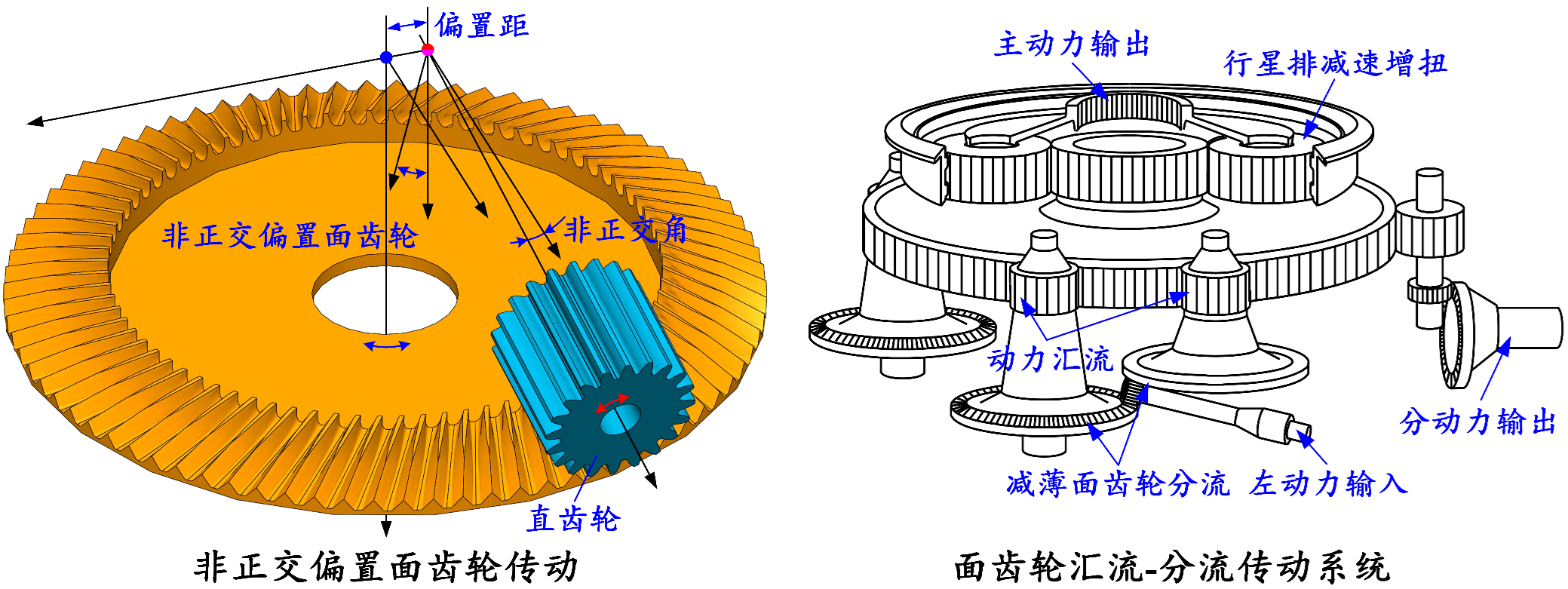 图1 非正交偏置面齿轮传动与高端装备中的面齿轮传动系统