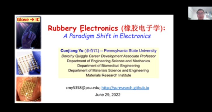本网讯(通讯员&编辑:彭宇琦 审核:刘泽庭)6月30日上午,美国休斯敦大学大学教授余存江通过腾讯会议的方式,来巴卡漫画 开展了主题为“Rubbery Electronics: A Paradigm Shift in Electronics(橡胶电子学:新型电子器件范式)”学术研讨会。