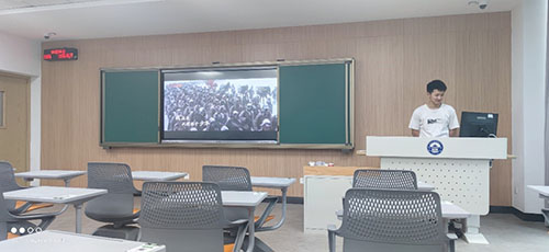 然后,同学们一起观看了一段建党百年主题视频《少年》。图片视频的形式更能勾起同学们胸中那颗炙热的心。同学们都被一幕幕波澜壮阔的历史所震撼到,心潮澎湃之下,更下定了要为中华民族的伟大复兴,为了社会主义事业贡献自己力量的决心。