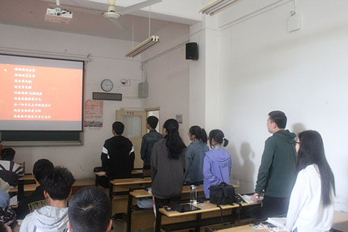 活动第五部分,辅导员黄呈棋和大家分享了一些党员心得。我们跟能感受到身为一名共产党员的自豪感和责任感。最后,在主持人戴俊涛的带领下,全体同学起立,握拳起誓重温入团誓词,一起再次感受当时自己澎湃的内心。在洪亮又慷慨激昂的誓词声中,此次团日活动完整地落下了帷幕。