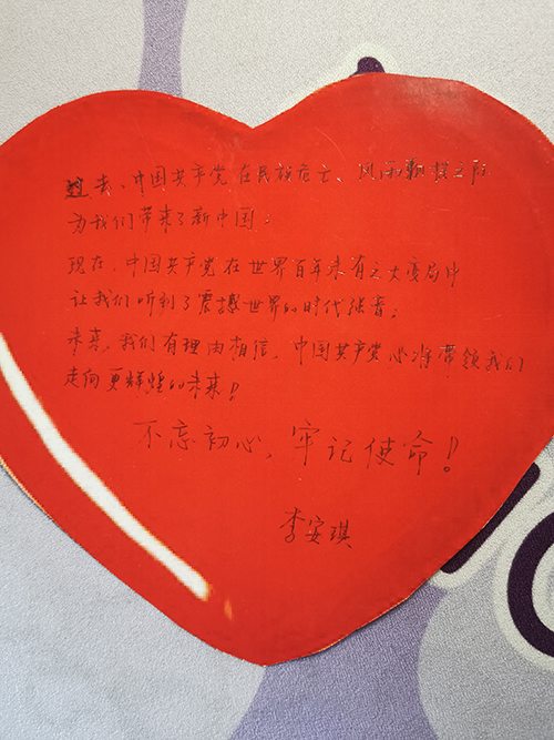 在工作人员的安排下,党团员青年们在爱心标签上书写下自己对党的忠心、信心与决心,并合影留恋,至此,活动落下了帷幕。