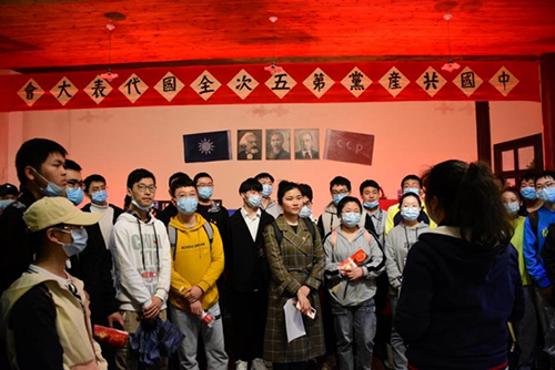 全体同学驻足中共五大会址展厅,在这里汪思明为同学们实地讲授党的理论先进性以及胜利的来之不易。