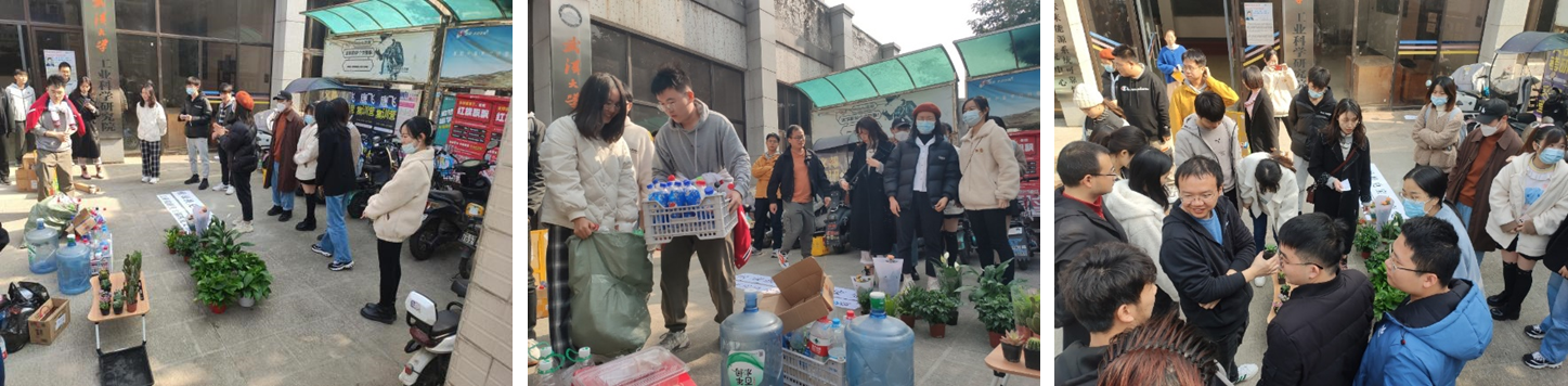 活动开展半小时,一大片绿植就被同学们兑换的所剩无几,换来的是满满五麻袋空瓶和大量的纸箱,大家带着自己喜欢的绿植花朵开心离去。最后由支部负责人将回收的物品进行了统一的整理销售。