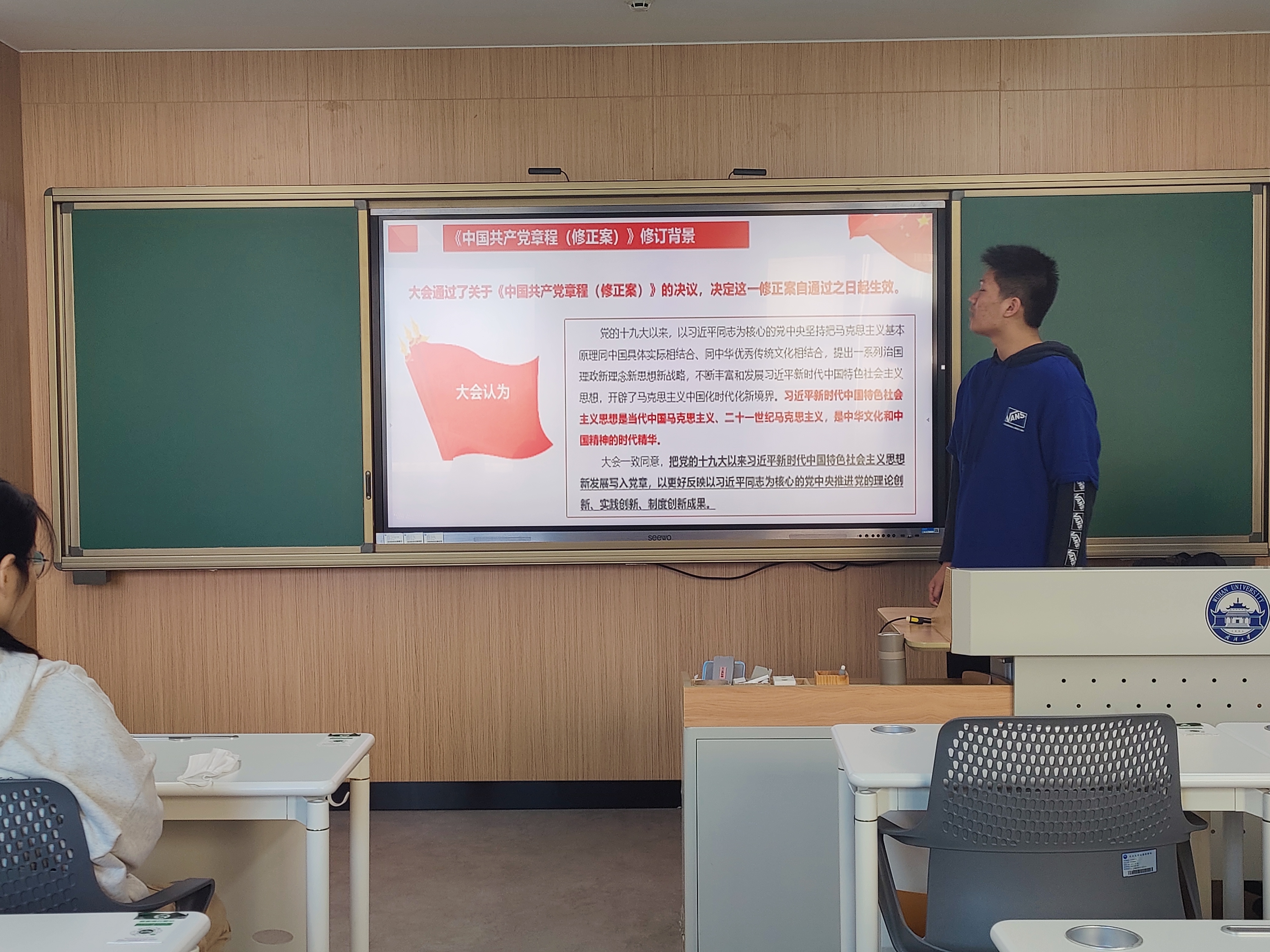 学习了党的二十大报告及精神后,活动进入下一项,中国共产党章程专题学习。党章是党的总章程,集中体现了党的性质和宗旨、党的理论和路线方针政策、党的重要主张。团支书为全体团员详细讲解了《中国共产党章程(修正案)》的修订背景,重点强调习近平新时代中国特色社会主义思想是当代中国马克思主义、二十一世纪马克思主义,是中华文化和中国精神的时代精华。通过学习,每一位团员都深刻理解了“以习近平同志为核心的党中央坚持把党章作为管党治党总依据,使全党思想上更加统一、政治上更加团结、行动上更加一致,推动党在革命性锻造中更加坚强”的内涵。