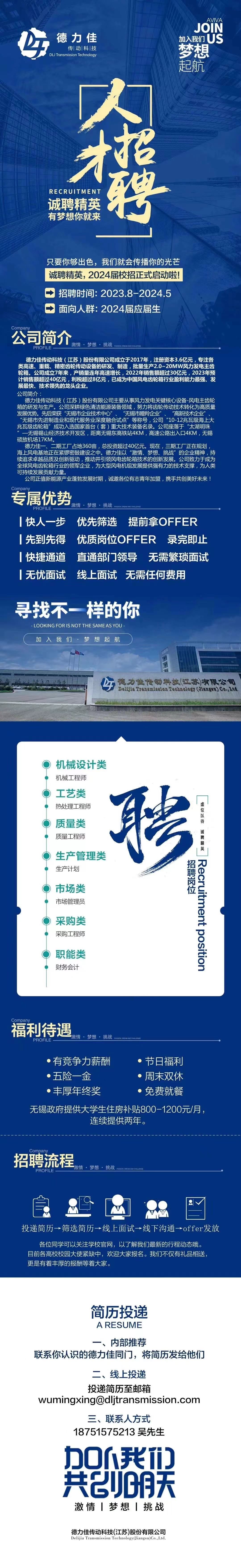 德力佳传动科技(江苏)股份有限公司2024校招启动啦