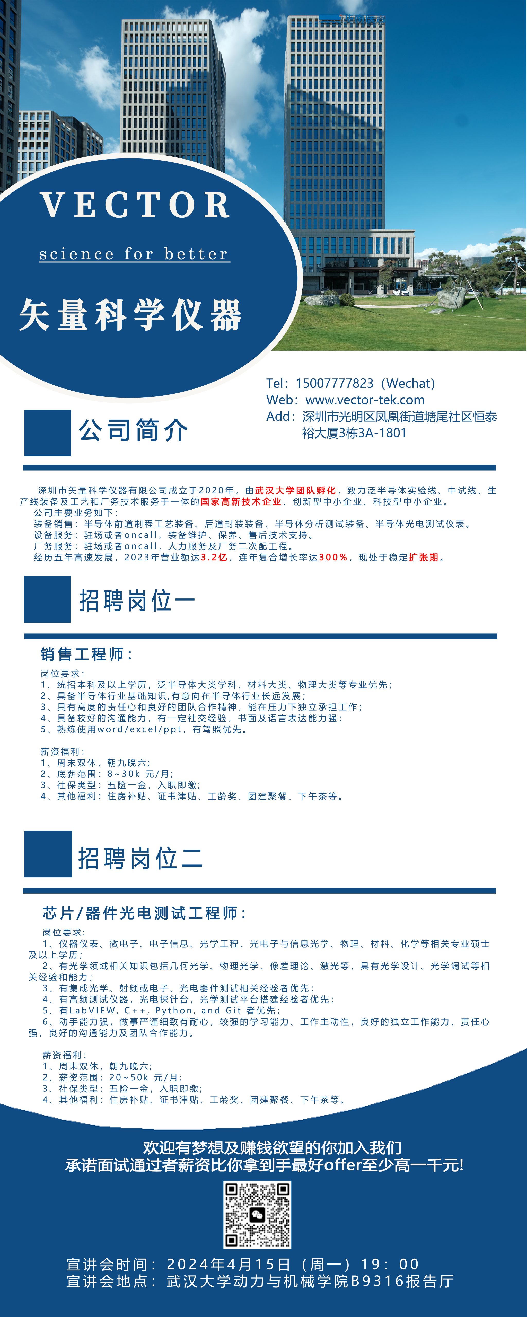 4月15日 19:00 学院报告厅| 深圳市矢量科学仪器有限公司招聘宣讲会