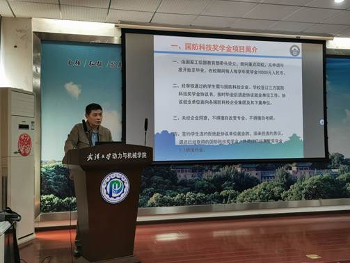 郑军表示国防科技奖学金是由国家设立的一项重要奖学金计划,旨在吸引高校优秀大学生攻读涉及国防科技领域相关学科专业,引导培育大学生家国情怀,为国家安全贡献力量。随后,郑军对申请条件和申请流程进行了详细解读,并向大家介绍了中国航空科技集团有限公司、中国船舶集团有限公司、中国航空工业集团有限公司等十家设奖签约企业的概况、待遇以及所需专业等基本情况。