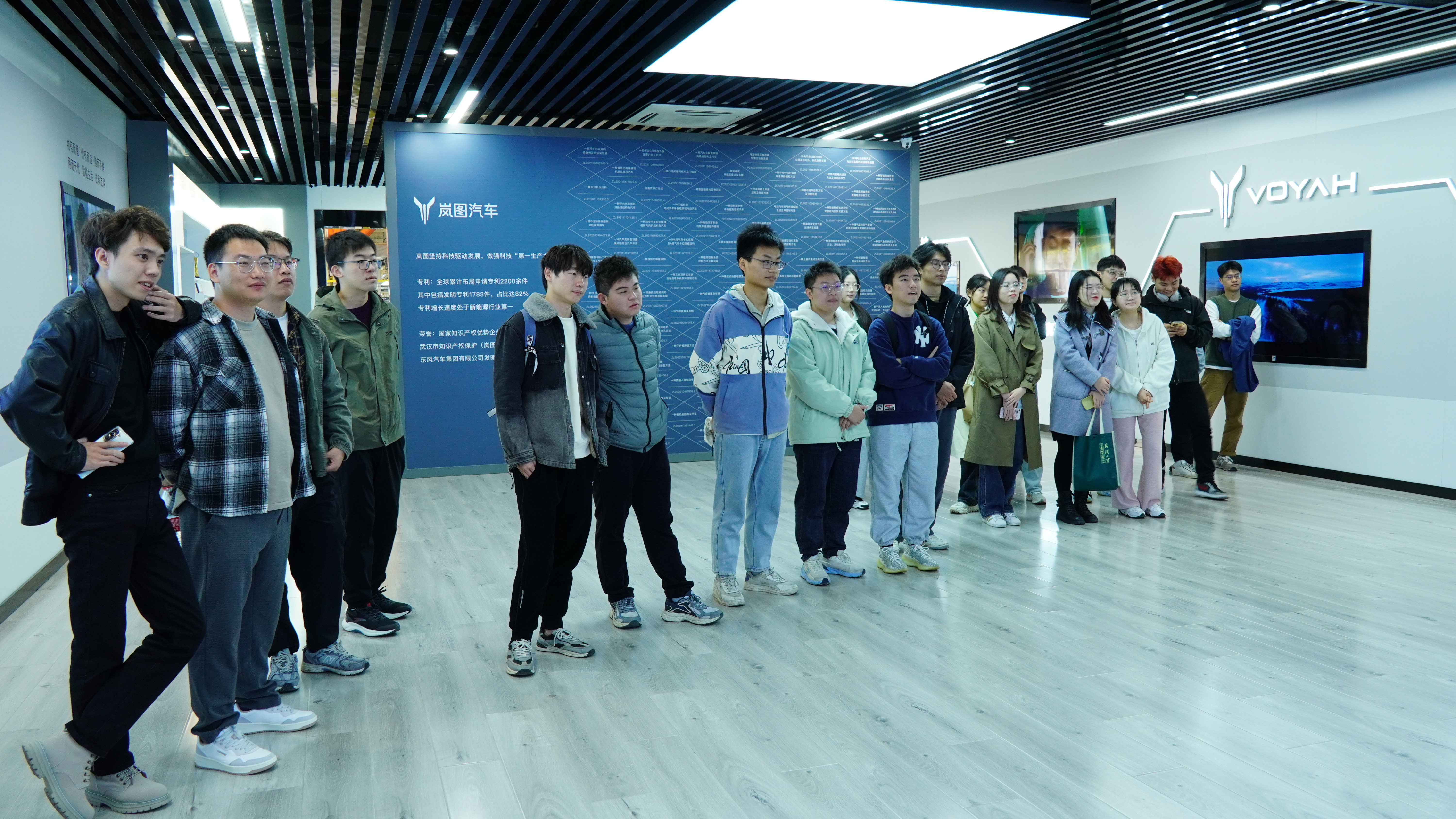 活动开始,东风岚图校园招聘负责人李豪带领学生们参观企业历史文化展览馆,系统展示了东风岚图企业54年的发展历程。参观过程中,李豪结合世界新一轮科技革命的背景以及我国正处于转变发展模式的现状,强调了科技创新对于行业进步及国家发展的重要性。