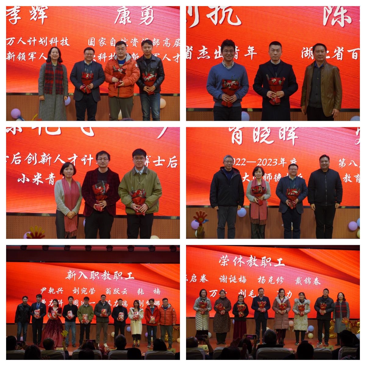 总结过后,学院领导班子成员对定明月、李辉等11位2023年获得荣誉的老师献花祝贺,为冯朝、黄德钊等17位新入职教职工送上龙年公仔表示欢迎,为叶春松、谢诞梅等13位荣休教职工献花表达最美好的祝愿。之后,荣休教师代表叶春松教授发表贺词,他表示,在看到了今年的优异成绩后对学院的未来充满信心,并祝愿大家在新的一年龙腾四海飞黄腾达。