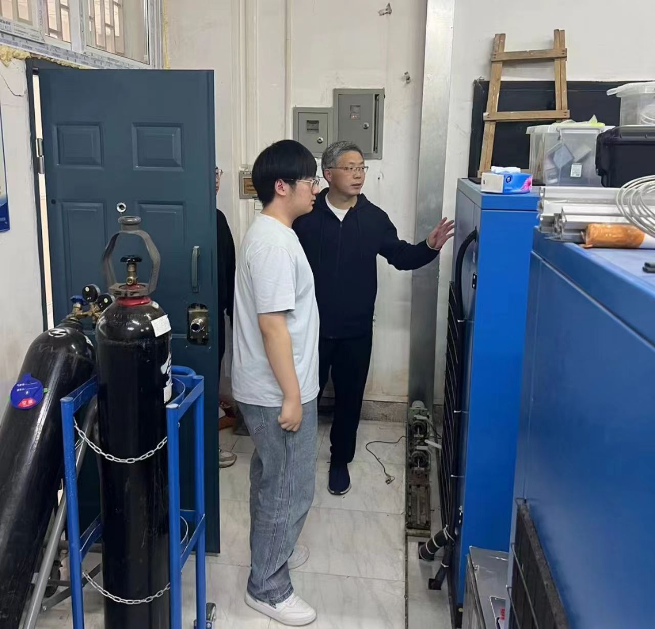 匡松详细查看了课业室的用电设施、线路布置等情况,并针对可能存在的安全隐患提出了整改意见。同时也对实验室的化学品存放、实验设备使用等方面进行了仔细检查,要求严格执行实验室安全操作规程,确保实验过程中不发生安全事故。他强调,安全是学院发展的基石,要将安全工作摆在重要位置,不断加强安全意识,强化安全管理,确保校园安全稳定。