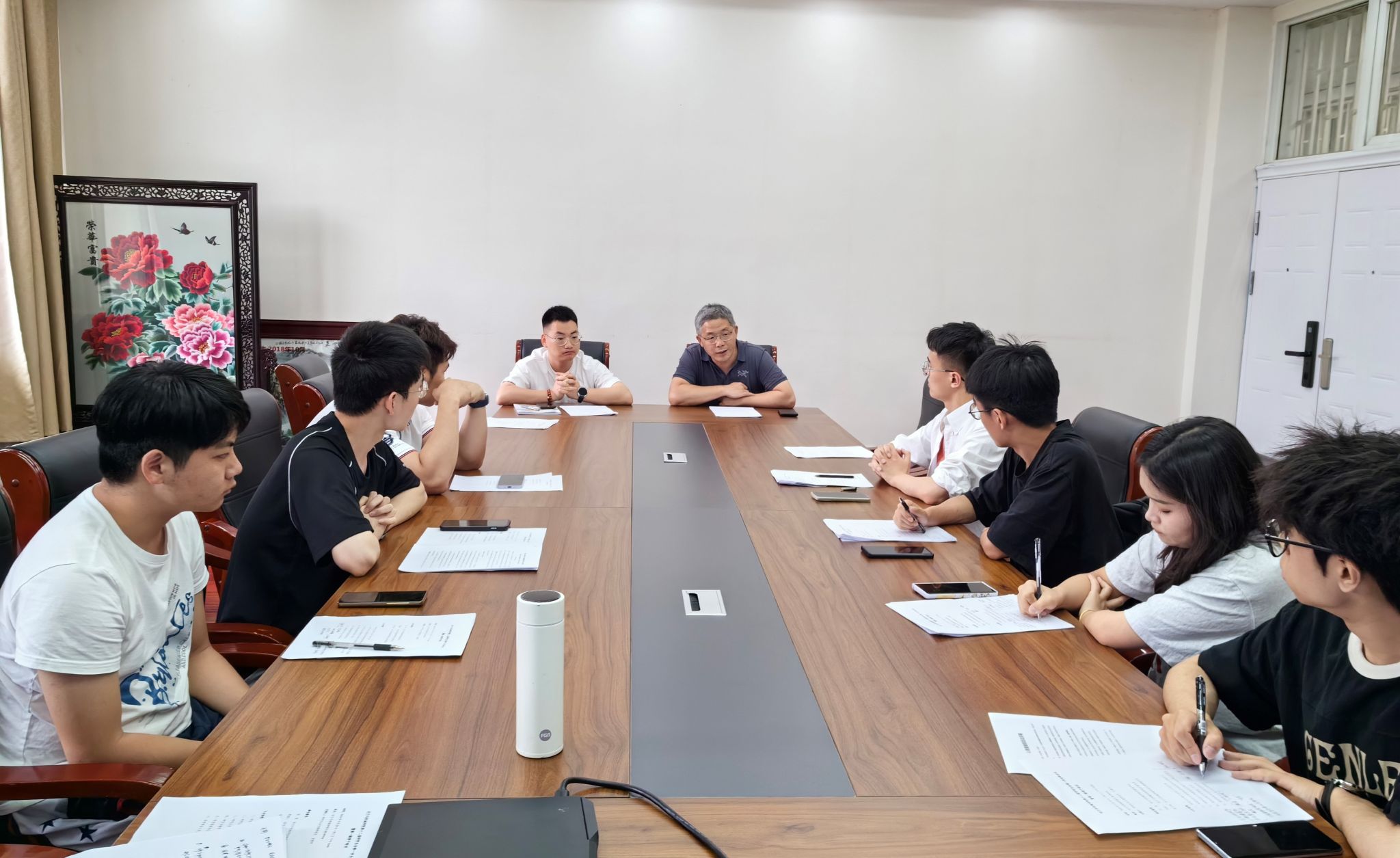 最后,匡松总结发言。他强调,要把握好研究生会的政治性,依据国家重大战略,充分把握时代机遇,围绕高校立德树人的根本任务开展有利于广大研究生的学术活动,为党和国家培养栋梁之材。他引用学院刘胜院长的成长经历告诉与会同学要提高学术眼界,注重不同学科交叉领域的研究,帮助同学积极探索科技前沿,为人才培养激活动力。他指出,在工作中要注意研究生会的群众性,打破部门之间、部门与研究生同学之间的壁垒,实现资源共享,杜绝官僚化、行政化、阶级化,反对形式主义,注意作风问题,重视群众基础,提高研究生会在广大同学心目中的影响力和号召力。