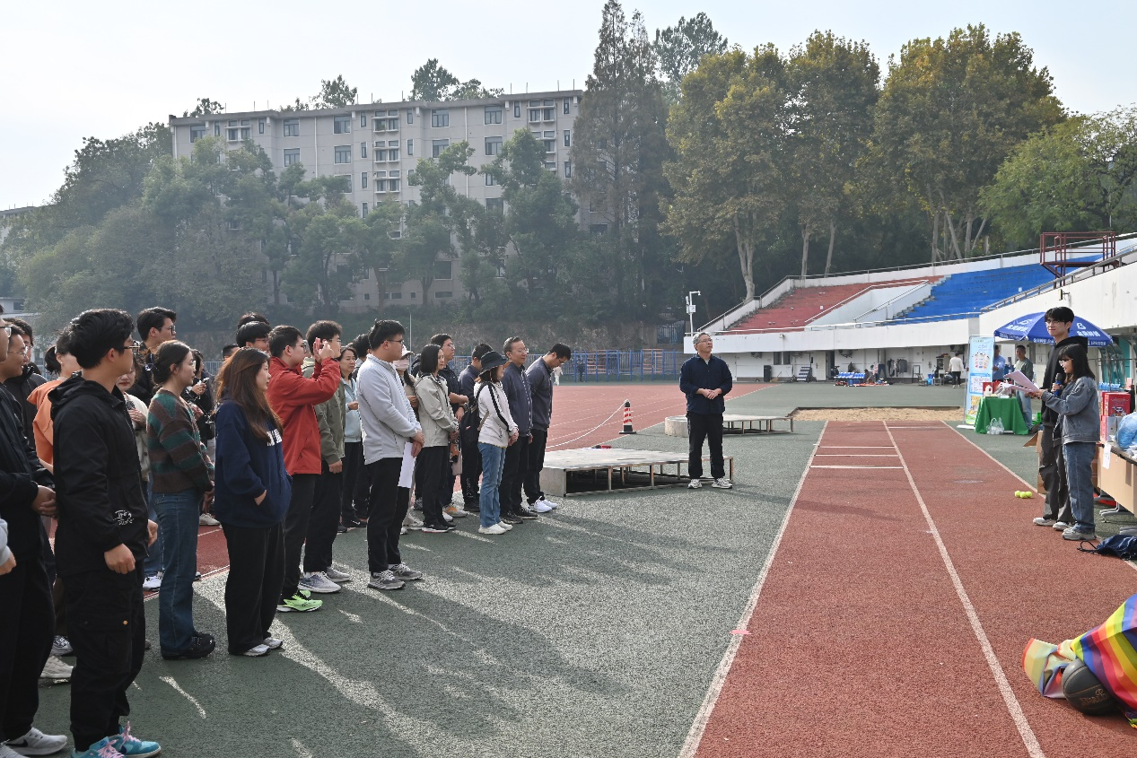 首先由工会主席匡松致辞,他提到师生趣味运动会是学院传统项目,旨在促进师生之间的良好沟通、营造师生之间的团结氛围,同时希望大家能够以此次运动会为契机,加强体育锻炼,提高身体素质。