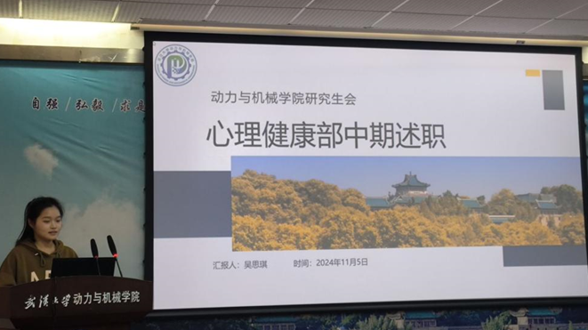 心理健康部负责人吴思琪同学介绍了部门情况并展示了近期完成的一系列活动,包括“心影共鸣”流浪拍立得计划、“致敬时光”新生慢递活动、交换空间”宿舍文化资助项目和“秋日暖阳”手作奶茶体验营等巴卡漫画 第七届研究生“心理健康节”重点项目,以及谈心谈话、心理健康讲座等工作。这些不仅缓解了同学们科研学习压力,促进了身心健康发展,同时也为校院“三全育人”贡献了一份力量。
