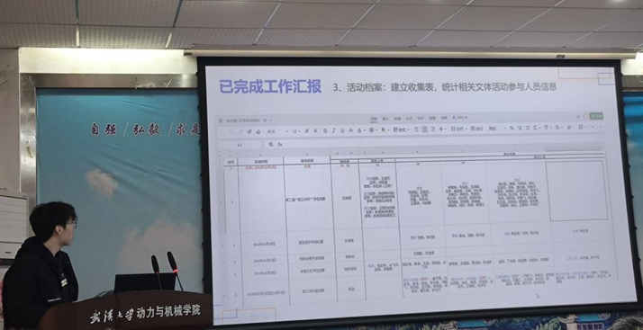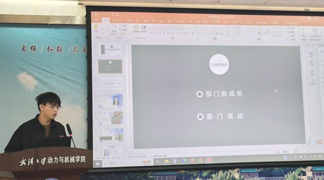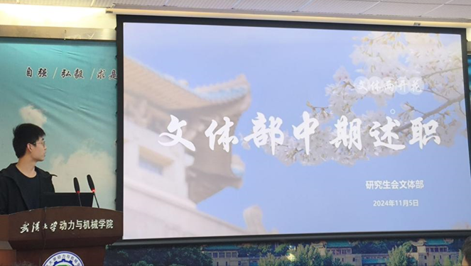 文体部负责人李瑞颉同学详细介绍了过去一段时间部门完成的研究生集体舞大赛、“新工科杯”体育文化节、师生趣味运动会等活动。上述活动不仅为大家提供了展现文艺体育风采的平台,还增强大家的身体素质,更提升了班级凝聚力和师生互动水平。最后,负责人也结合日常工作的思考,对文体部过去的工作内容做出了反思,并对研会的发展提出了相关建议。