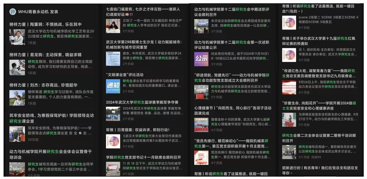 发布新闻稿件81篇 制作微信公众号推文37篇 制作海报43张 制作电子公告屏10次 向党委研究生工作部网站投稿26篇 微信公众号转发校研究生会推文15篇 向校研究生会公众号投稿推文15篇 |