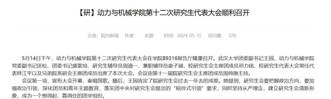 学院第十二次研究生代表大会选举产生了第十二届研究生会主席团成员,并经学院党委批准,报校研究生会备案。