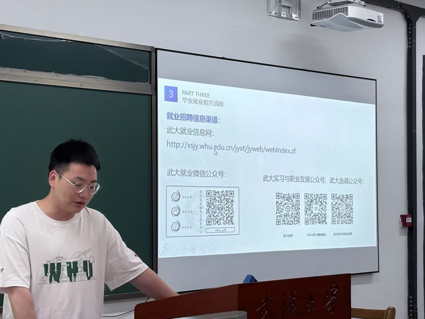 会议还特别邀请了2025届毕业生代表崔畅、李帅刚和何愉进行就业经验分享。崔畅结合自己成功入职华为的经历,从校招信息收集、面试技巧到简历优化等方面提供了实用建议;李帅刚分享了备考江苏、浙江、安徽选调生的经验;何愉则以武汉选聘生为例,鼓励同学们在简历和面试中充分展现自身优势。