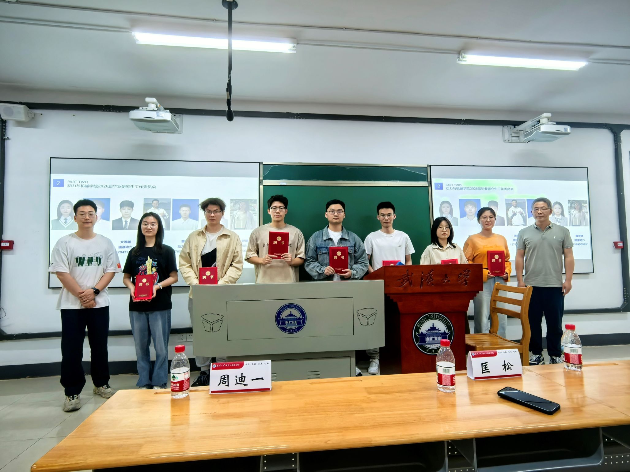 大会举行了2026届毕业生委员会成员聘任仪式。匡松、周迪一为委员会成员颁发聘任证书并合影留念。毕业生委员会将以“自我教育、自我服务、自我管理”为宗旨,协助学院开展毕业生相关工作。